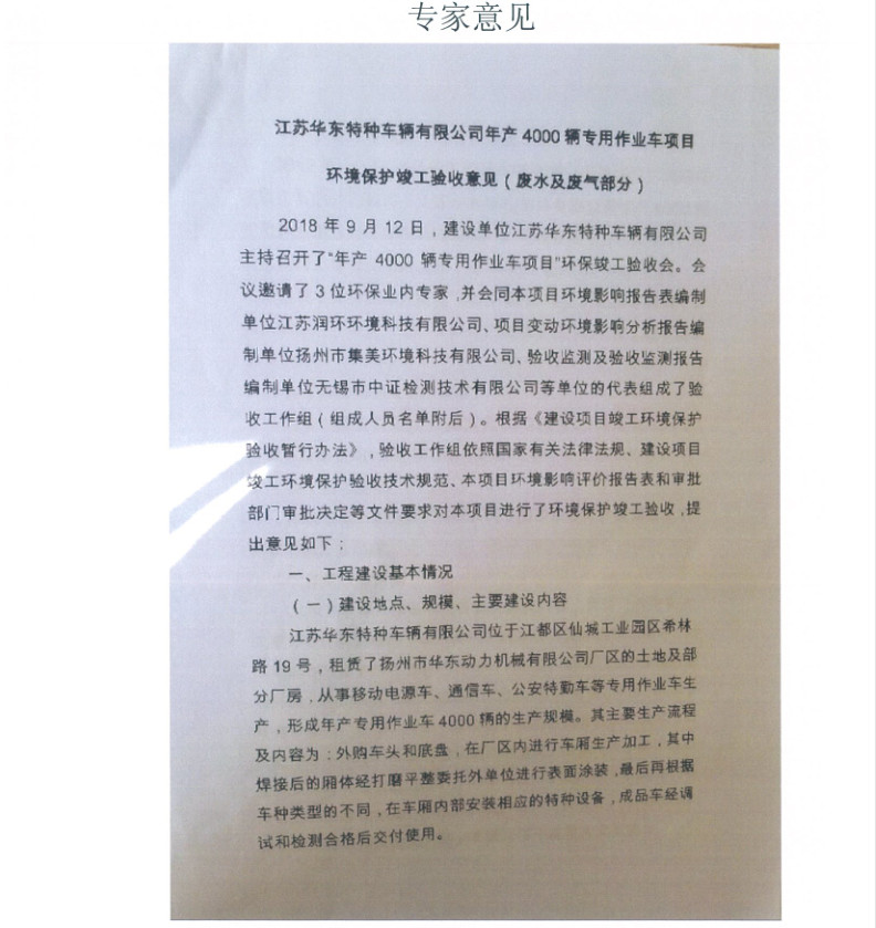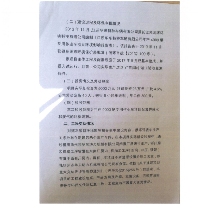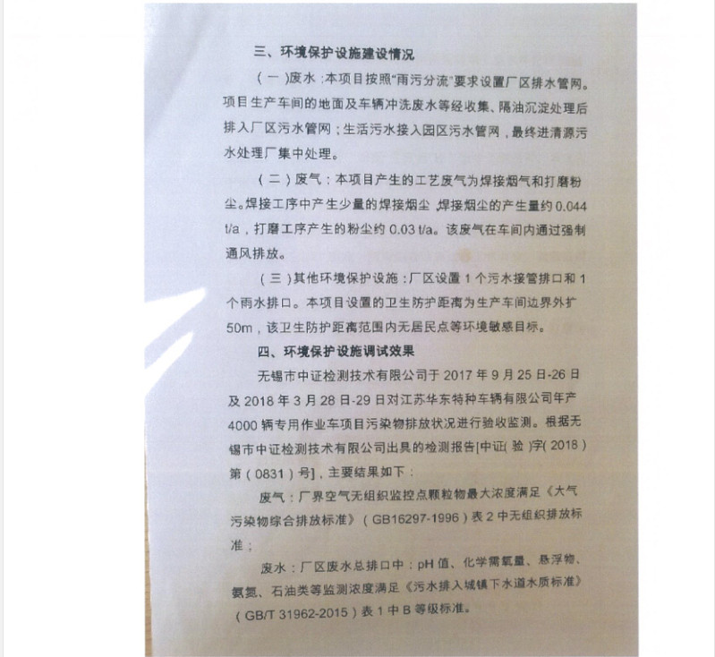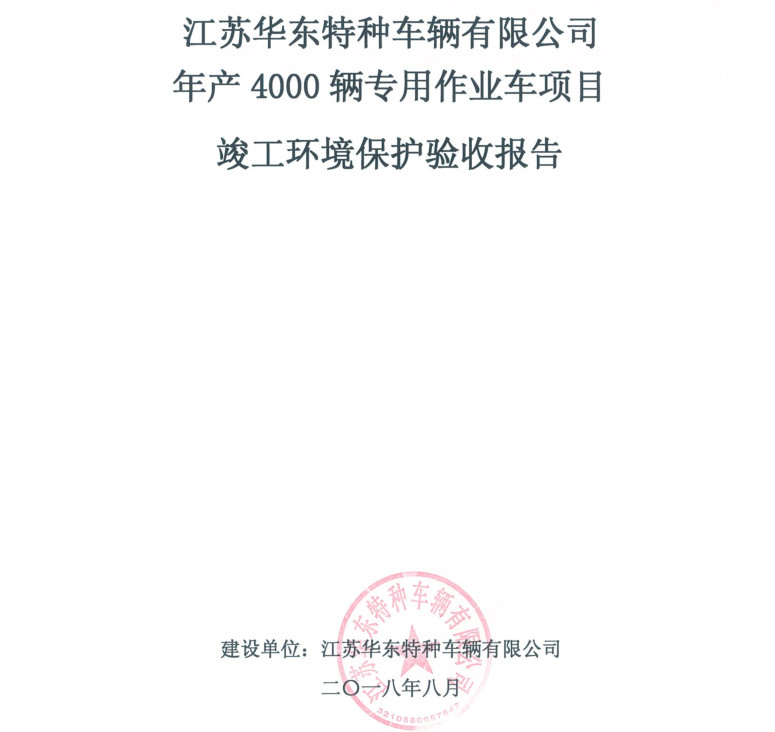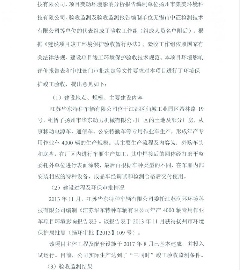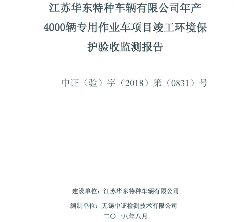 江蘇華東特種車輛有限公司年產(chǎn)4000輛專用作業(yè)車項目竣工環(huán)境保護(hù)驗收報告新聞中心