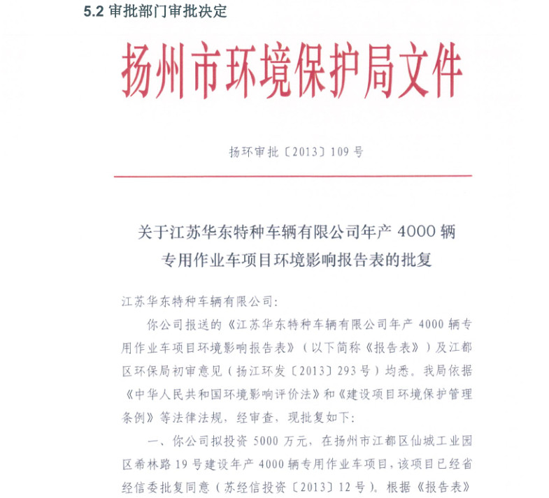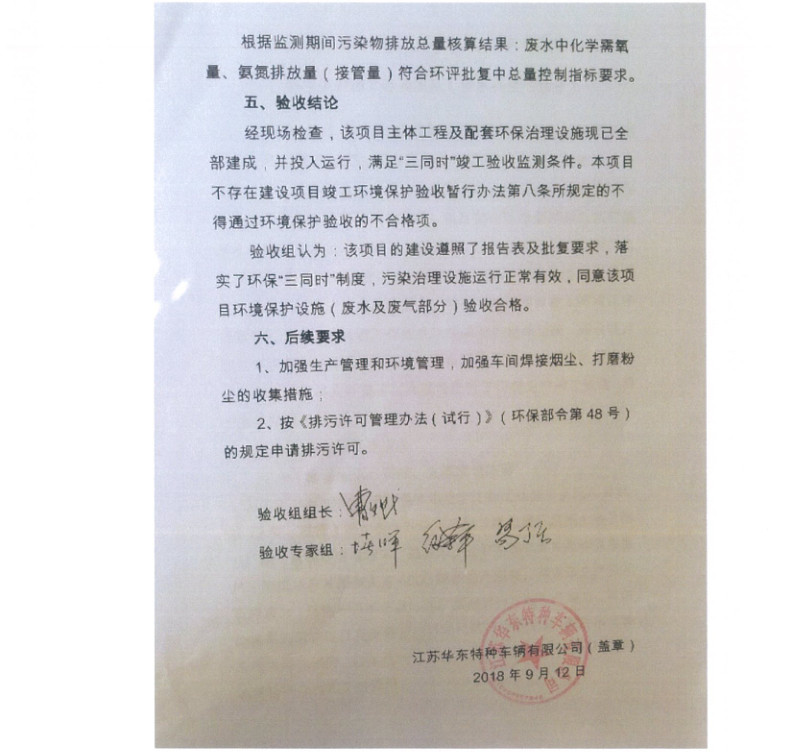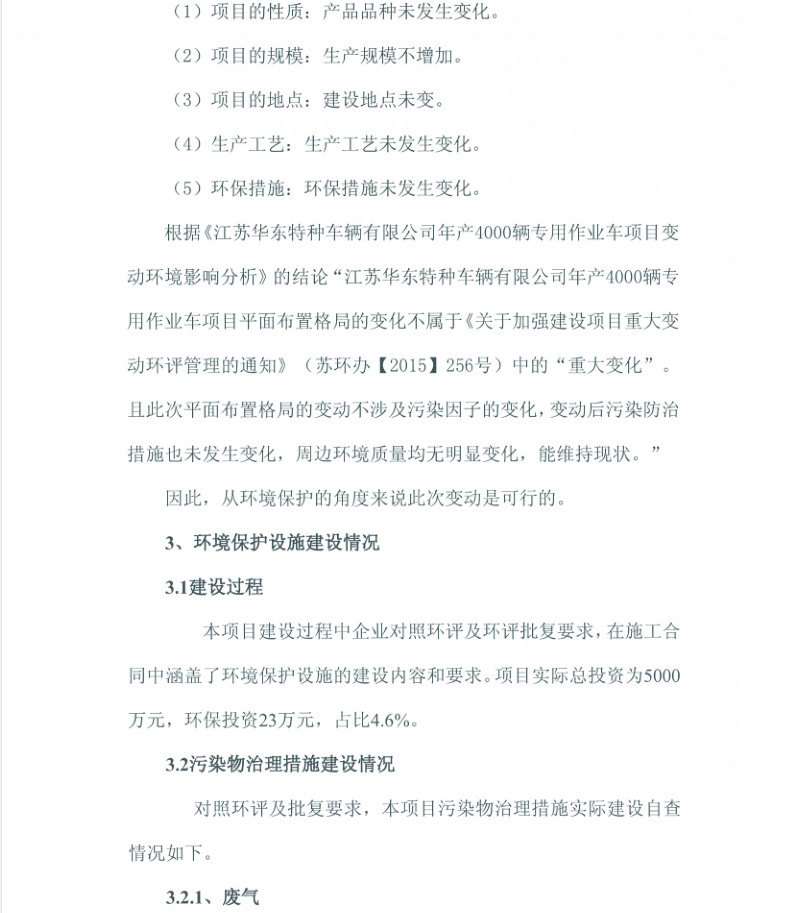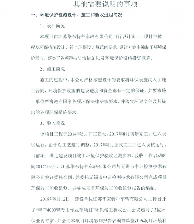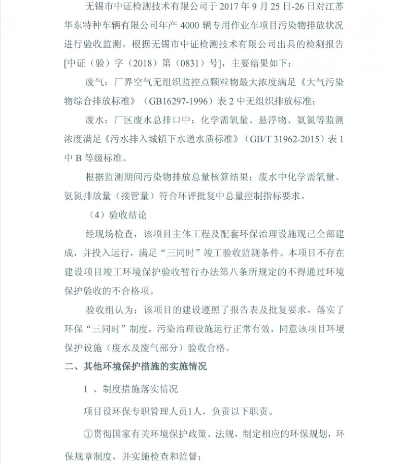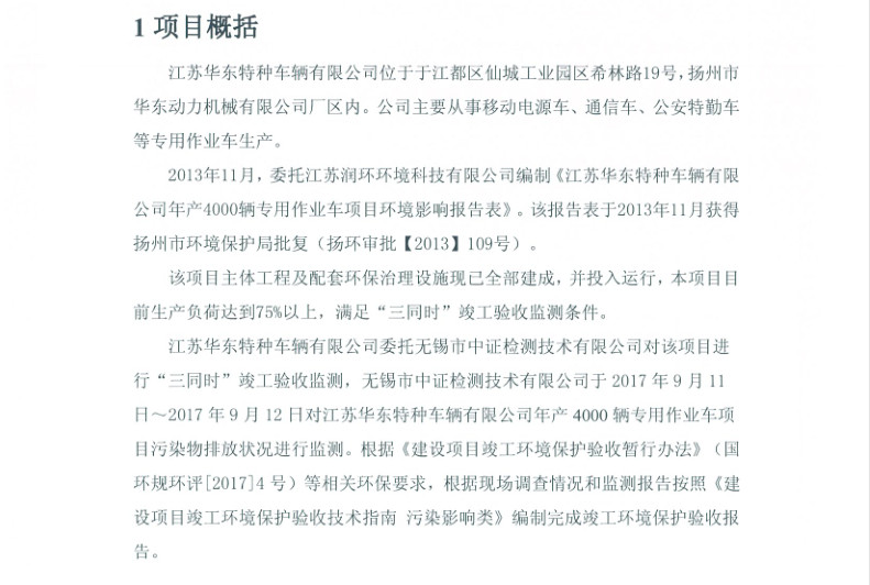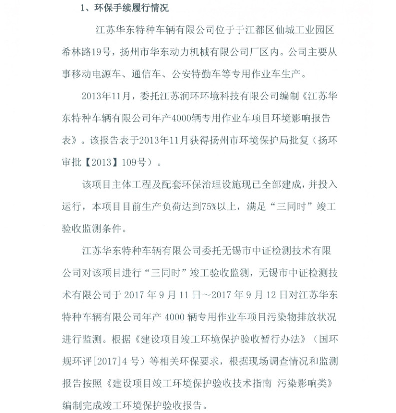 江蘇華東特種車輛有限公司年產(chǎn)4000輛專用作業(yè)車項目竣工環(huán)境保護(hù)驗收報告新聞中心