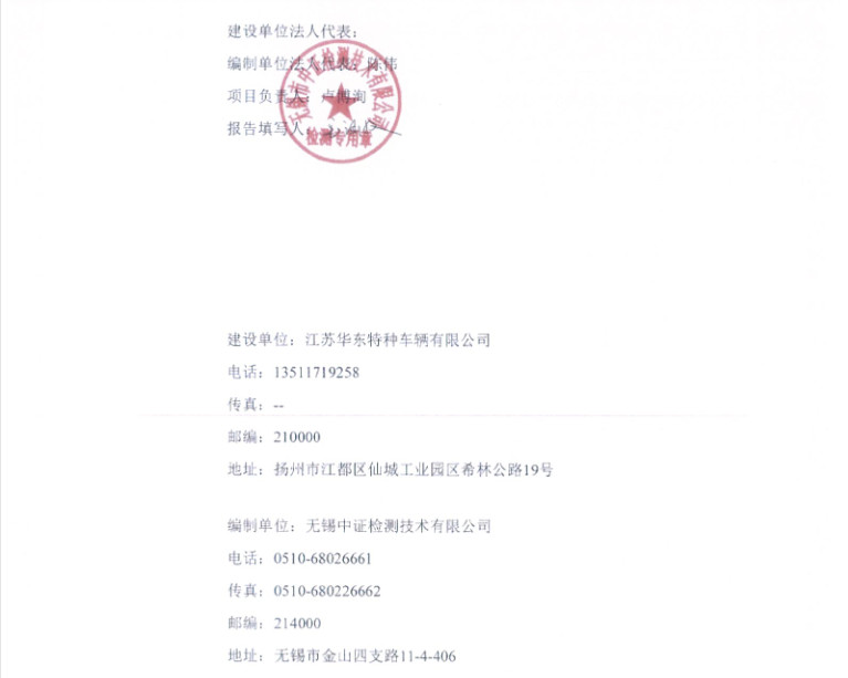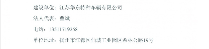 江蘇華東特種車輛有限公司年產(chǎn)4000輛專用作業(yè)車項目竣工環(huán)境保護(hù)驗收報告電話 : 0514-86821471